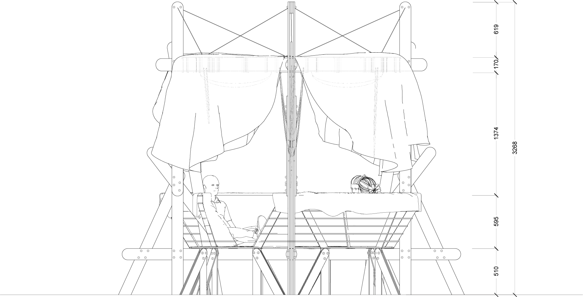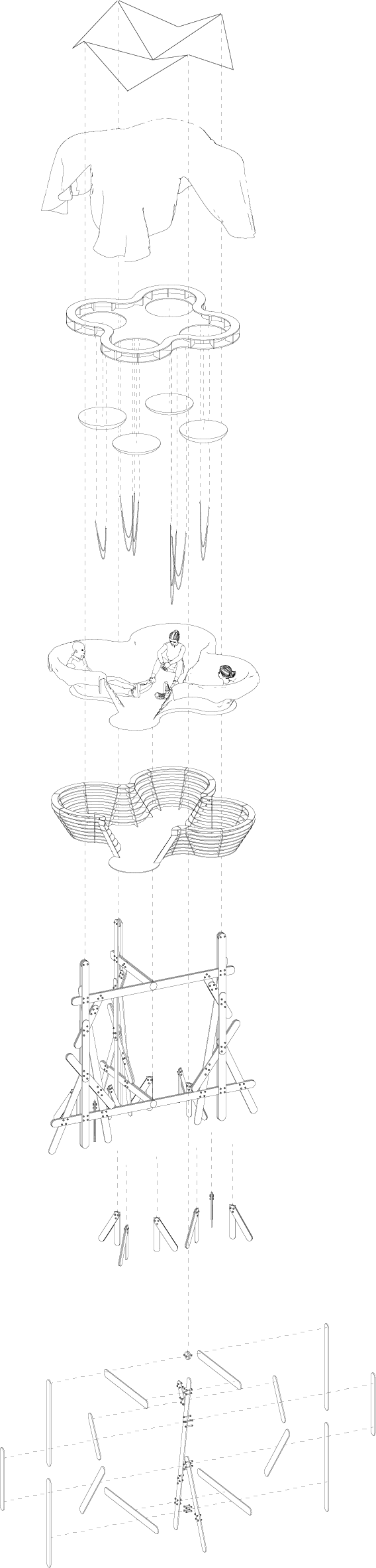 Leglo focuses on the relationship between humans and bacteria, showcasing how they can collaborate with simple ingredients to cultivate the biomaterial- bacteria cellulose. The installation, which is designed as a nest - or leglo in Croatian, brings together these actors within close proximity, creating interdependent relationships between the two and making their interactions tangible through the growth of a bacteria cellulose sheet.