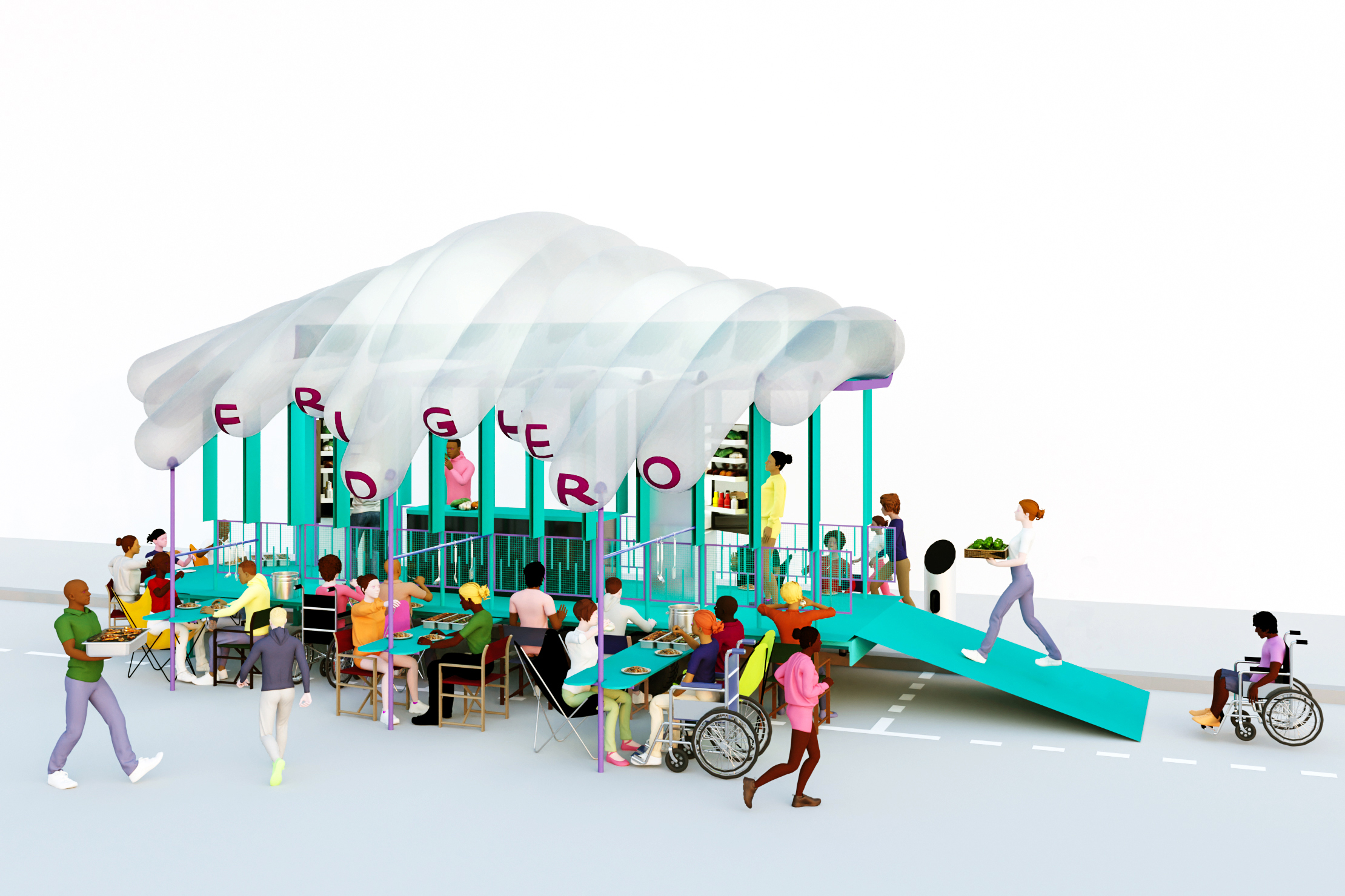 Fridghero is an itinerant cart that would have constructed a system between two existing food sharing platforms; Olio and Hub Bub