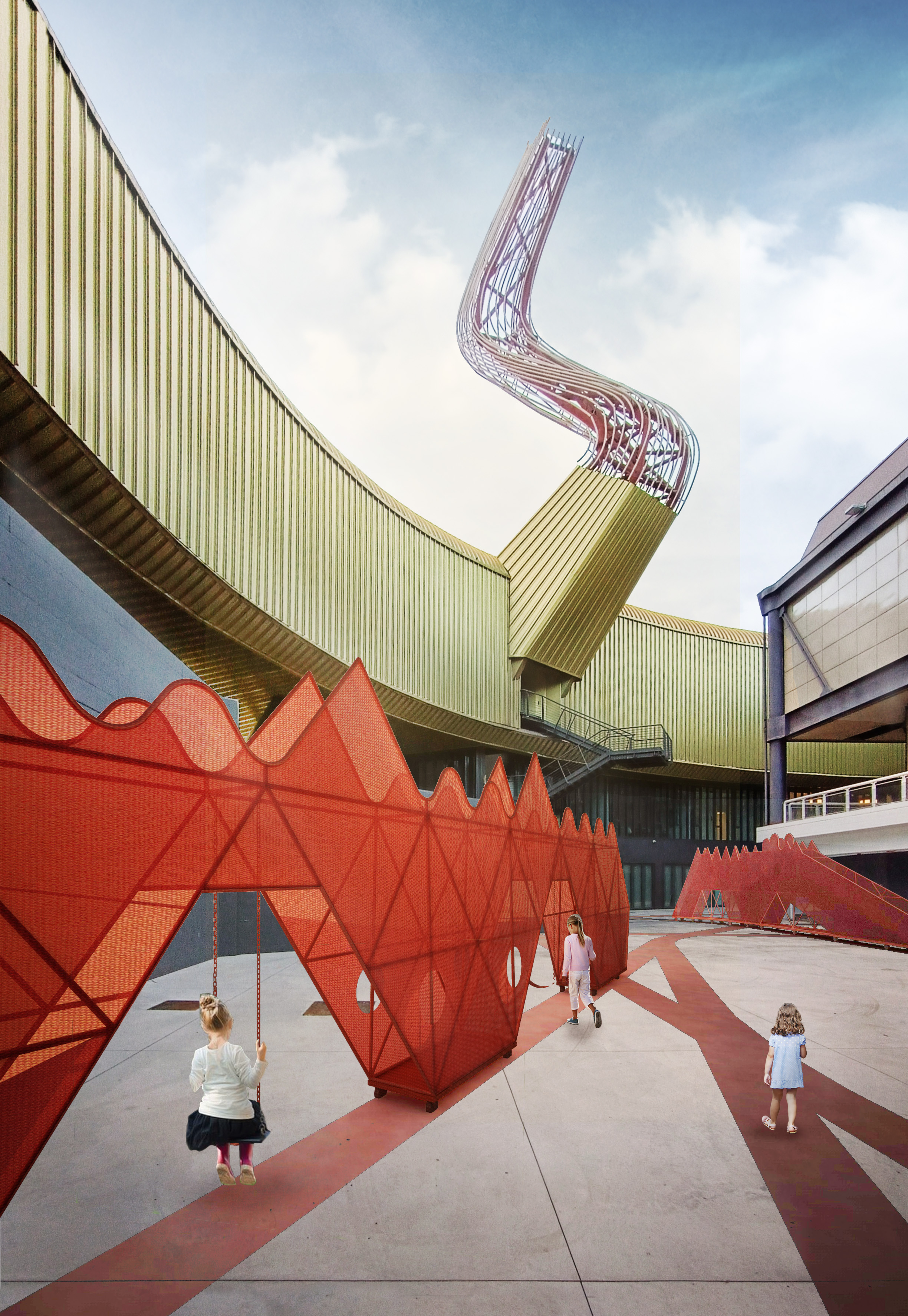 Red routes was born from the contamination of worlds that are only apparently distant: architecture, the industrial history of our city, participatory design, art and social impact. In our project, they coexist and feed off each other within a children-friendly landscape that transforms the museum's outdoor spaces, giving it new perspectives and vitality.