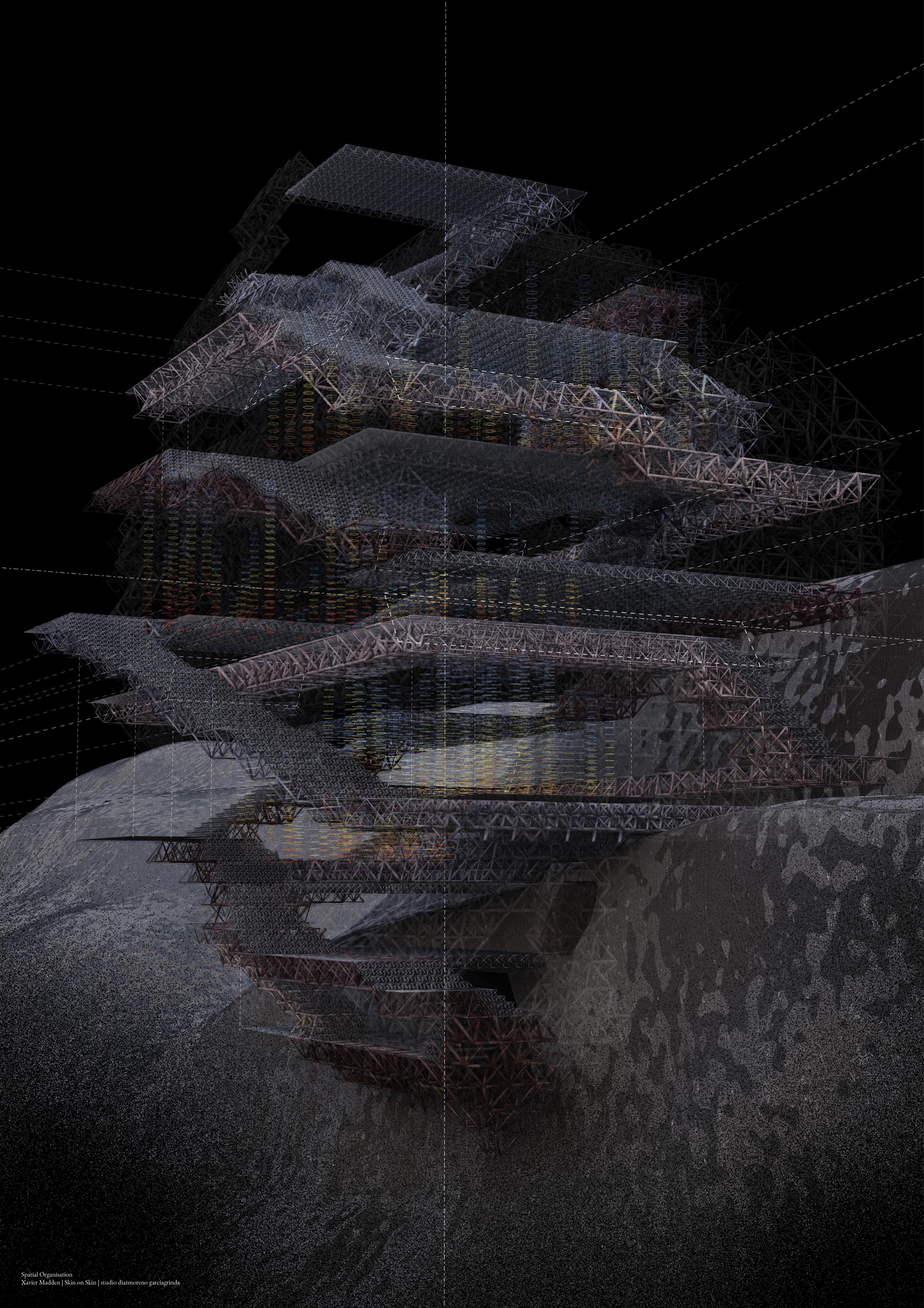 Through architecture, the project challenges the given power relations within society, as well as the relationships that humans have with their ‘anthropogenic world’, being no longer at the centre, but rather a one integrated within the complex series of interdependencies - bacteria and built form - skin on skin on skin.