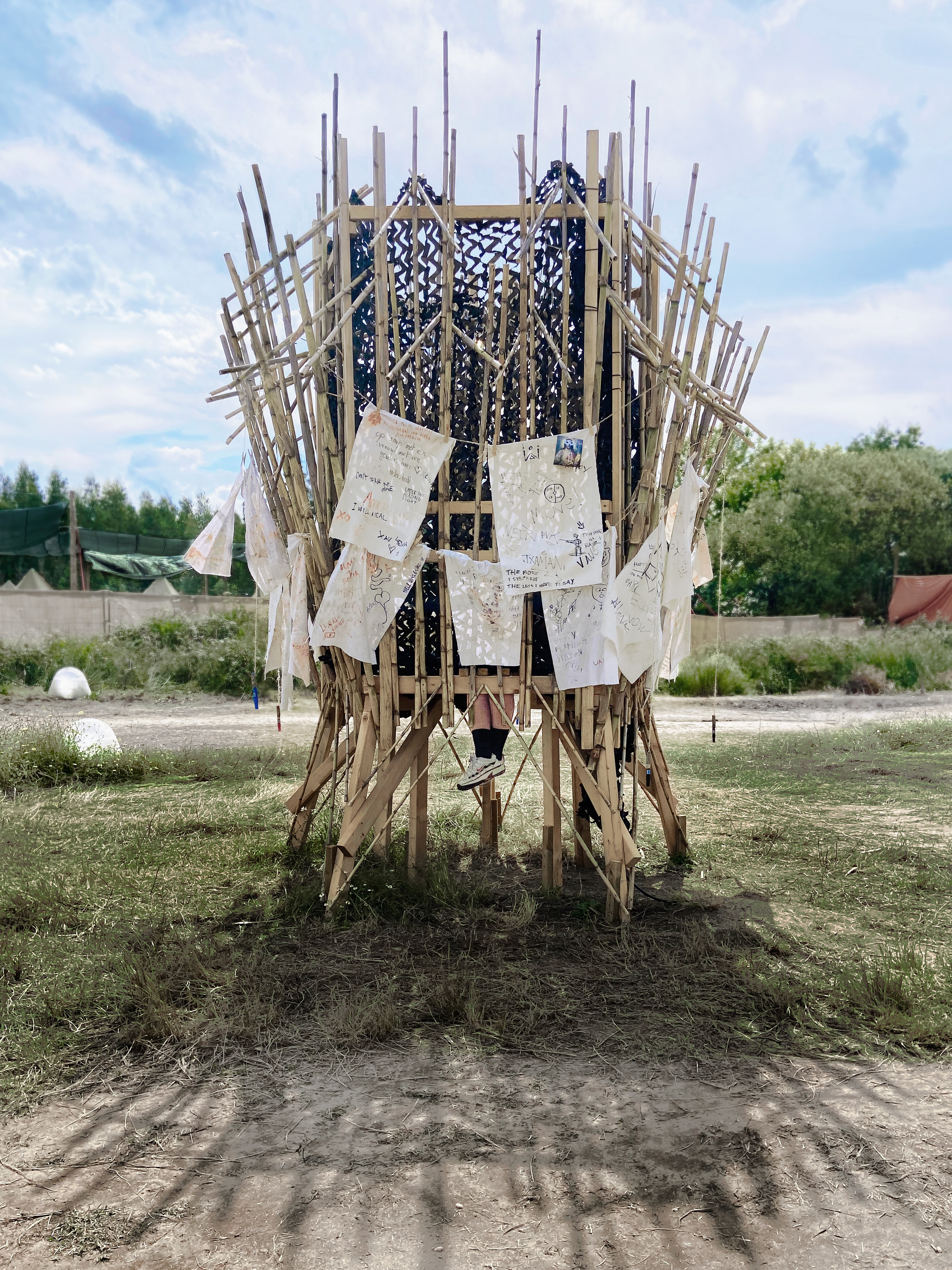 How about sharing your thoughts? A name of a track you heard? Maybe drawing a portrait of your friend? At the music and arts festival Waking Life 2023, our structure was used as a notice board to record memories, send messages or express nonsense! But as the name suggests there was more than meets the eye…